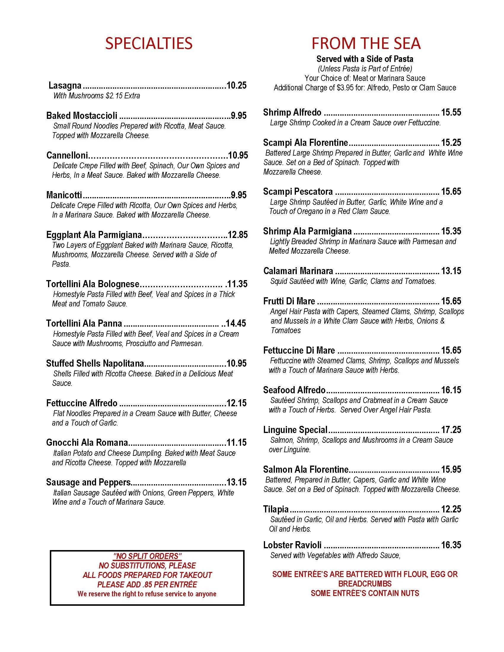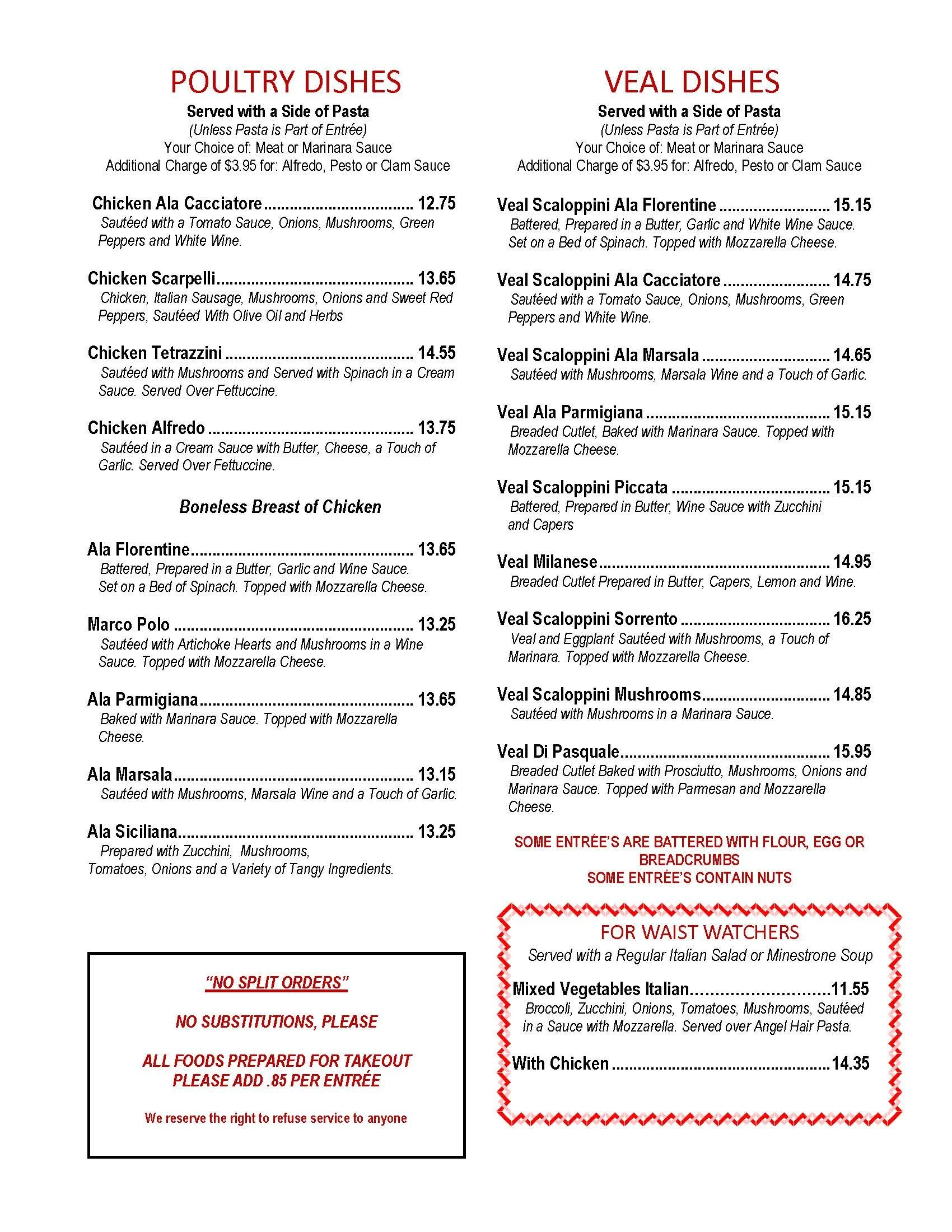 Chicken & Shrimp Alfredo (cooked in a cream sauce over fettuccine) with choice of salad or soup.